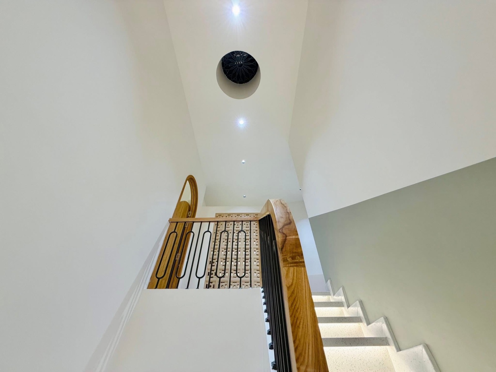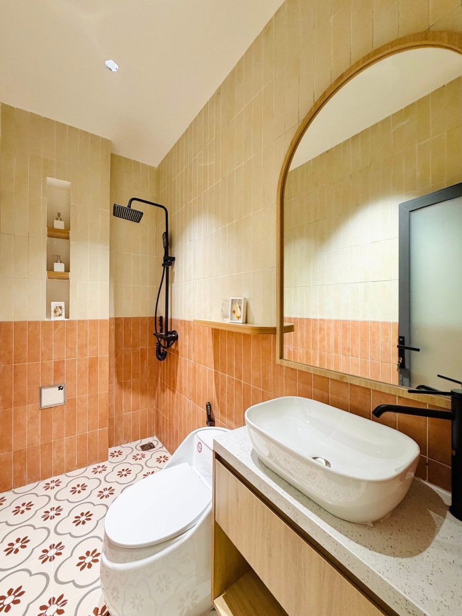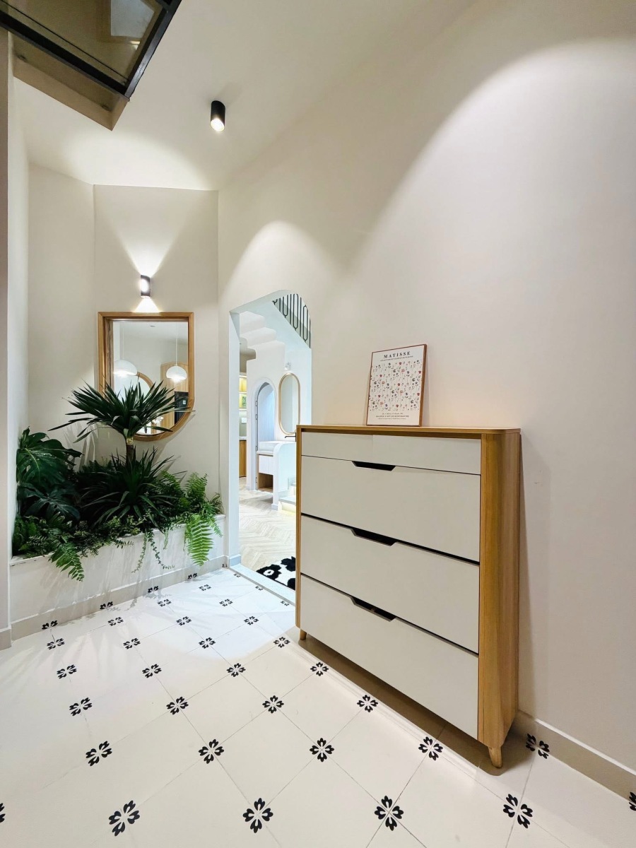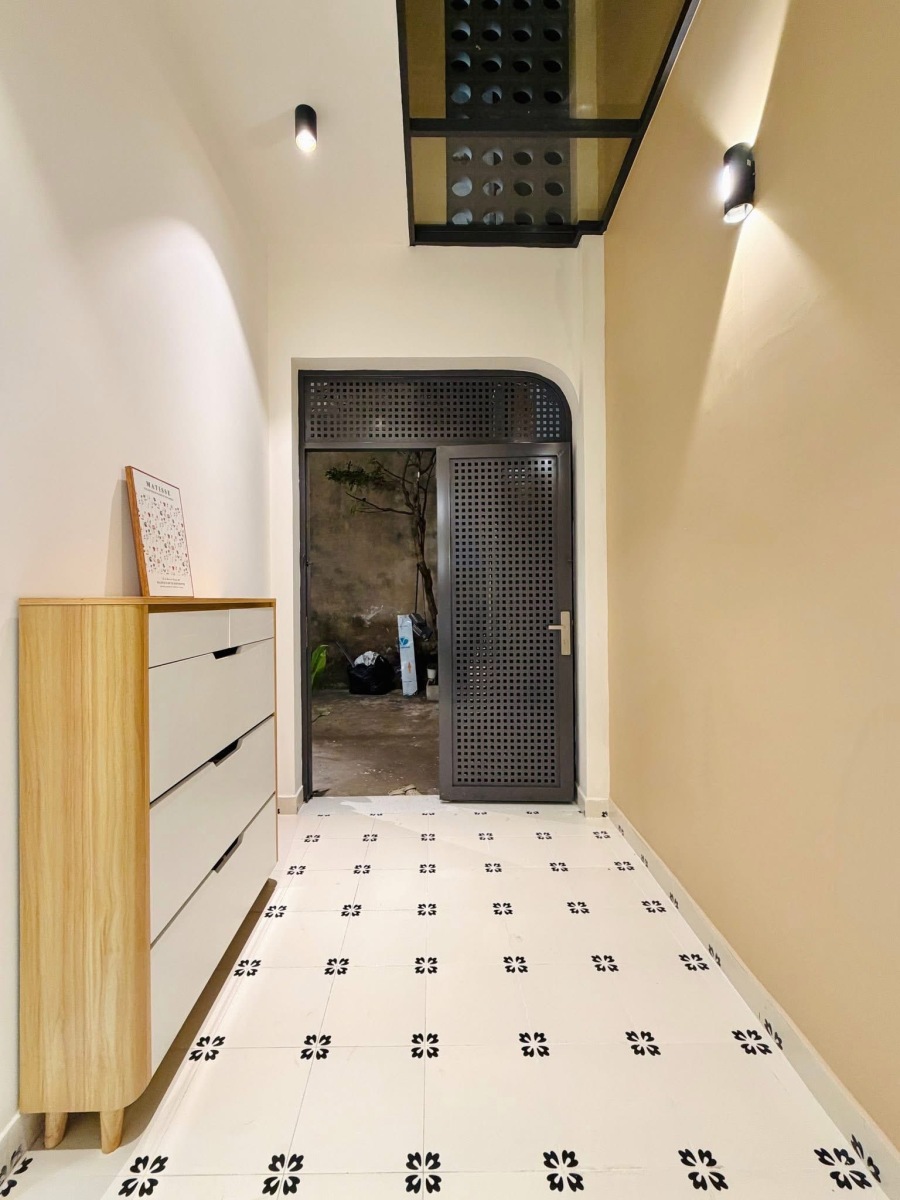Ngôi nhà được thiết kế theo phong cách minimalist hiện đại, sử dụng vật liệu cao cấp, ánh sáng tự nhiên và bố trí hợp lý. Đặc biệt, ban công rộng và sân trước nhà thoáng đãng là điểm cộng lớn giúp không gian luôn mát mẻ, dễ chịu.