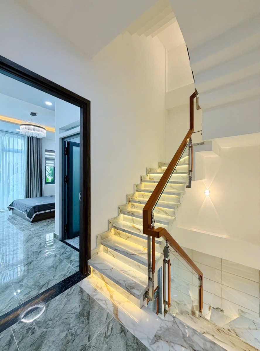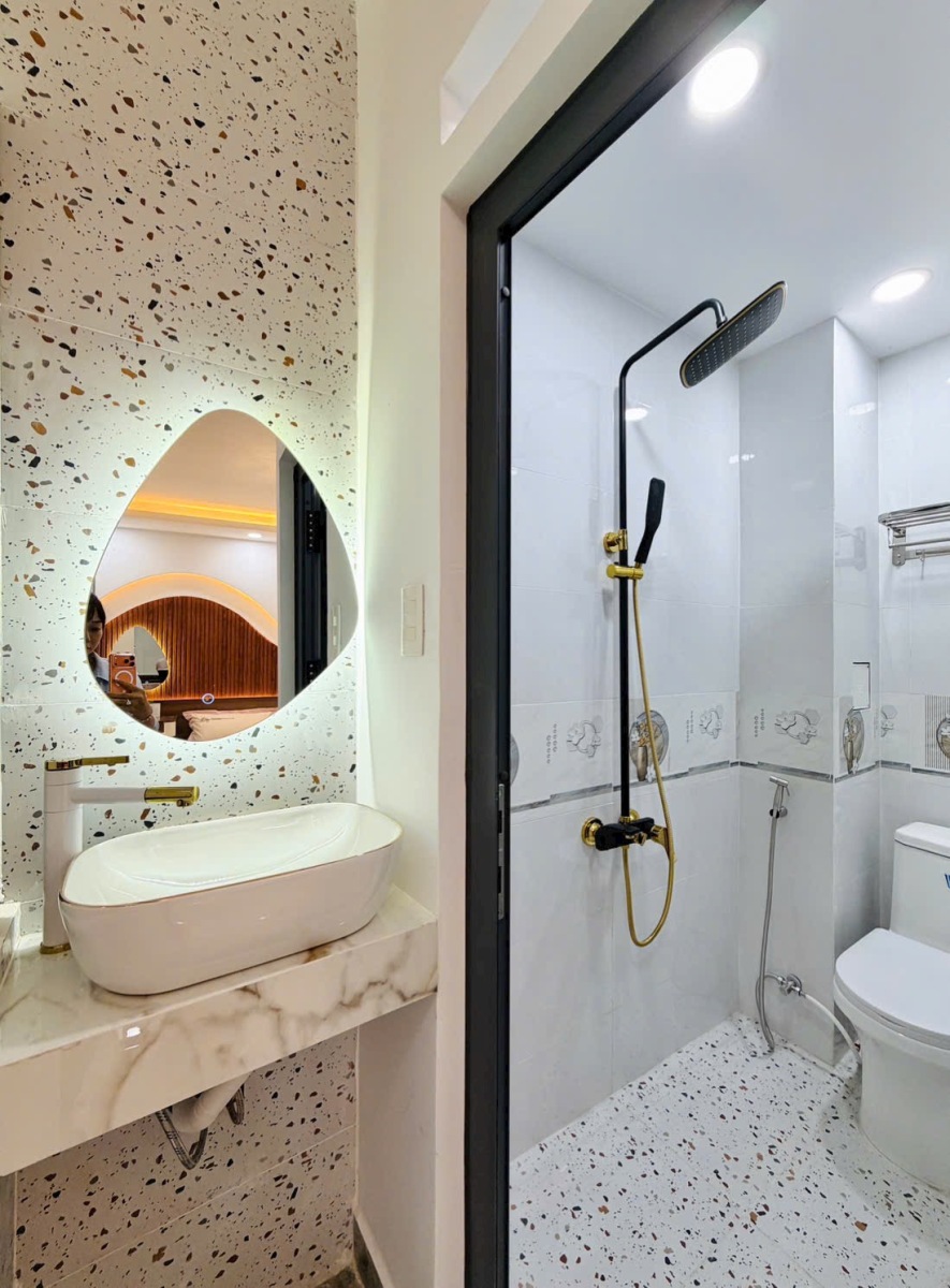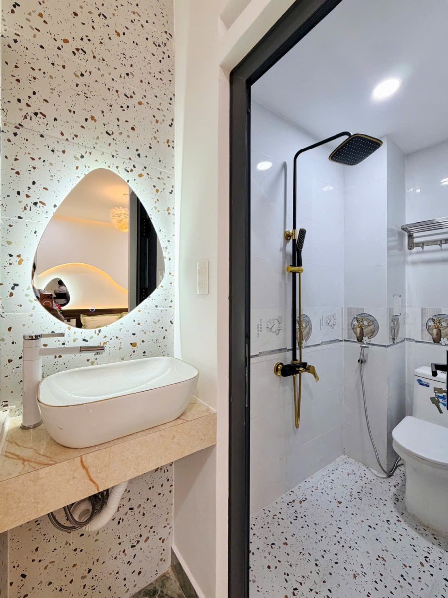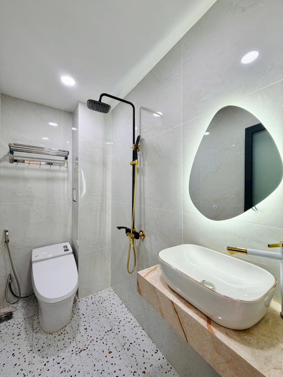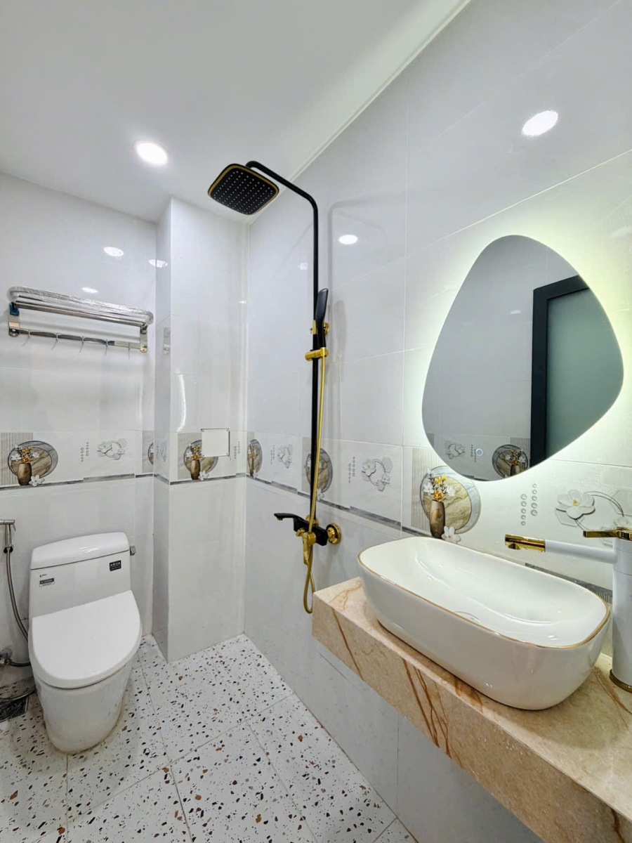 Ngôi nhà đẹp xây mới này được xây dựng kiên cố với kết cấu 1 trệt, 3 lầu, đúc 3 tấm vững chắc, đảm bảo chất lượng và tính thẩm mỹ lâu dài. Với diện tích lý tưởng 4.1\text{m} \times 12\text{m}, đặc biệt nở hậu lên đến 5.1m, ngôi nhà không chỉ tối ưu hóa không gian sử dụng mà còn mang ý nghĩa phong thủy cực kỳ tốt, tượng trưng cho sự thịnh vượng, tài lộc dồi dào, thu hút vượng khí cho gia chủ.
