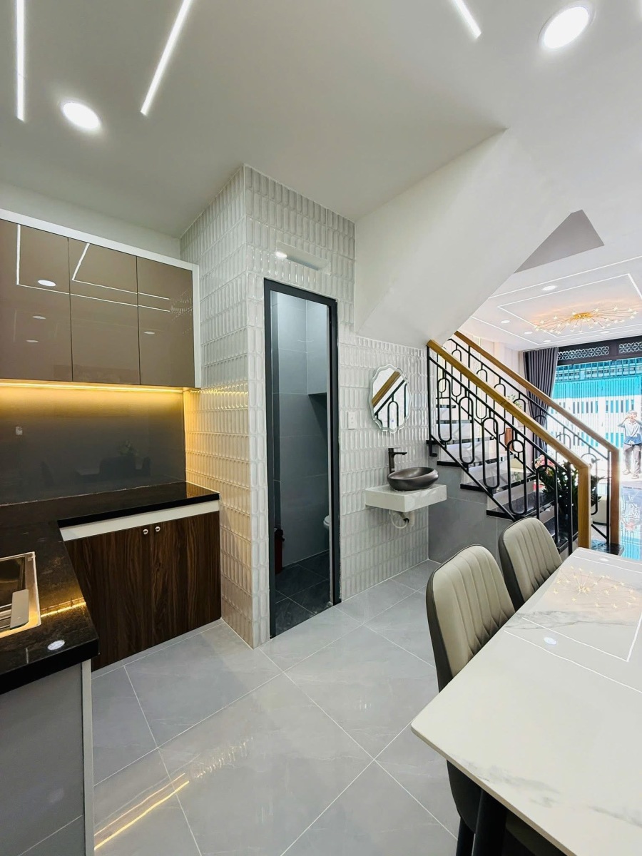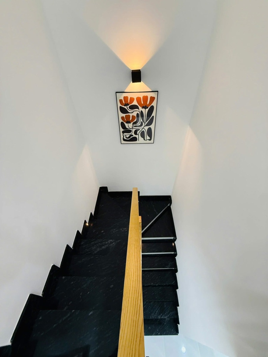 • Khu Bếp & Ăn: Bố trí gọn gàng, khu bếp có tủ bếp trên dưới hiện đại, mặt đá đen sang trọng. Khu vực ăn uống gần cầu thang, tối ưu hóa không gian.