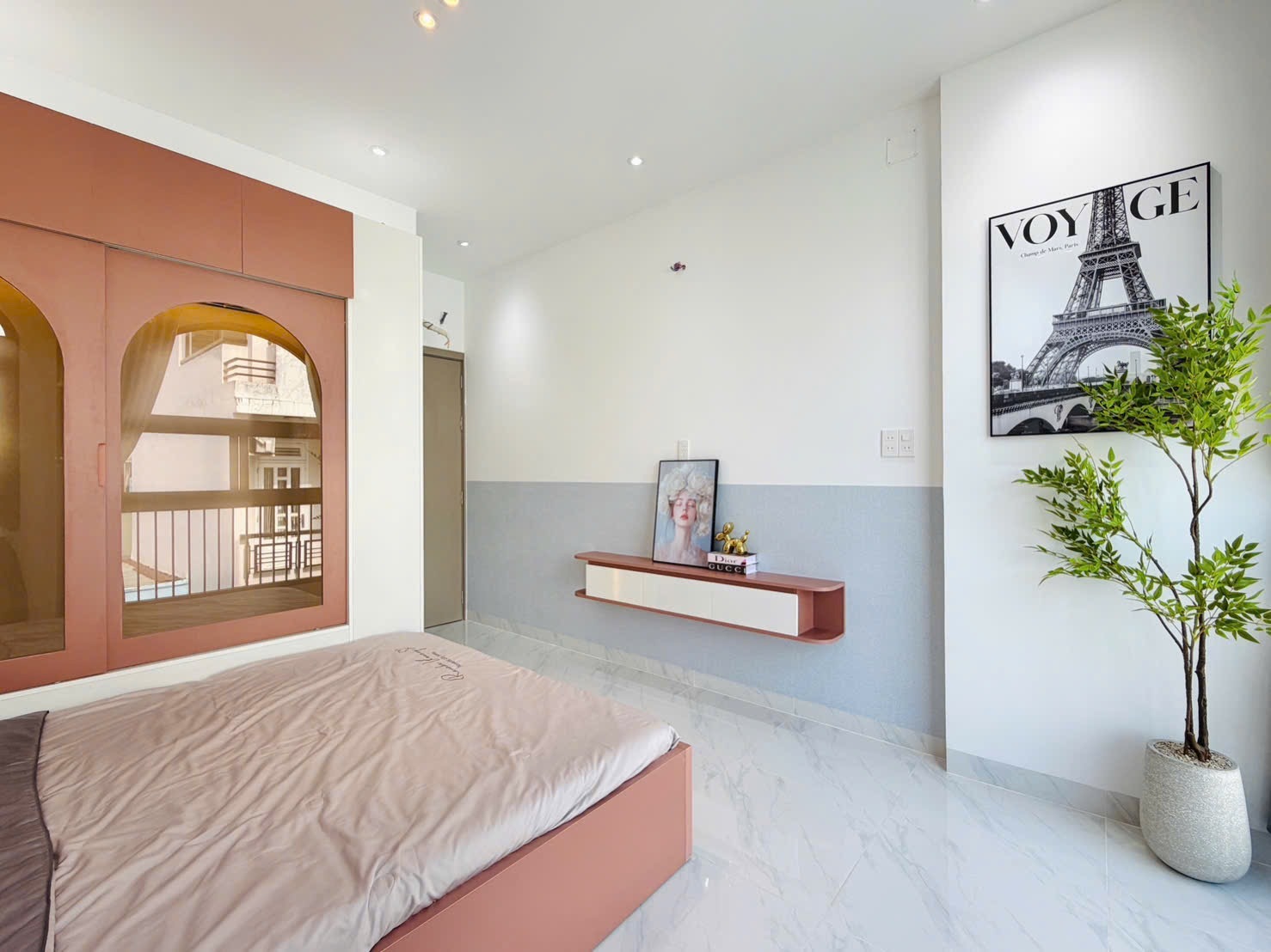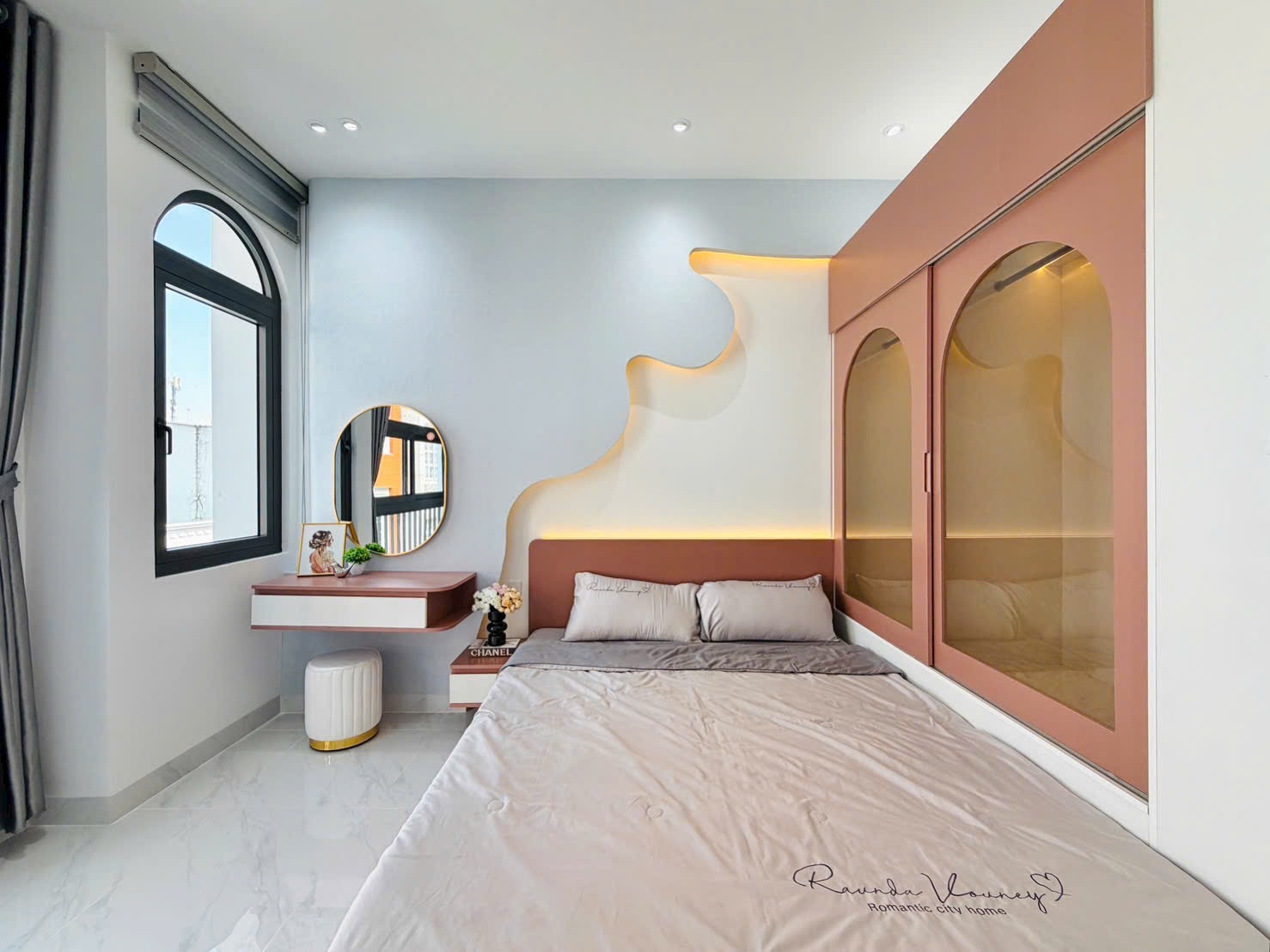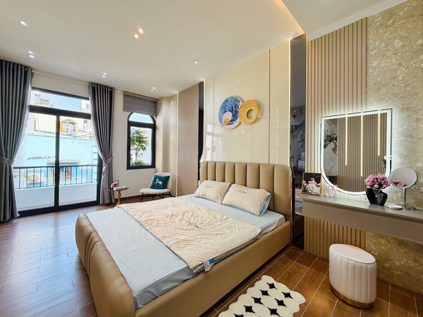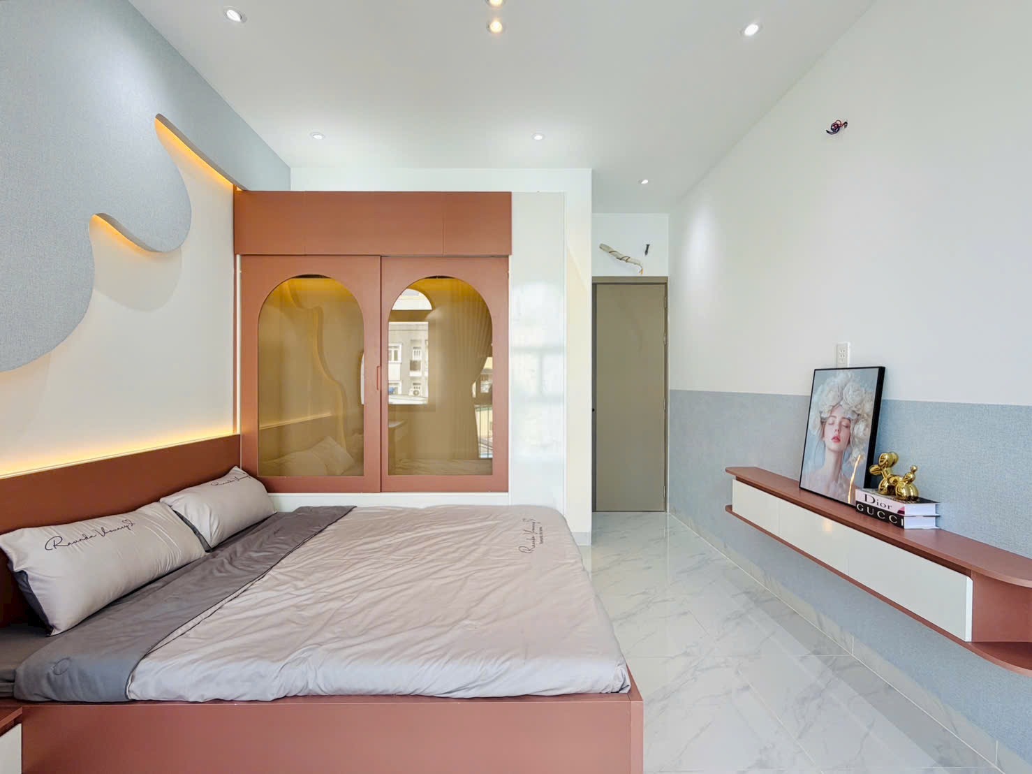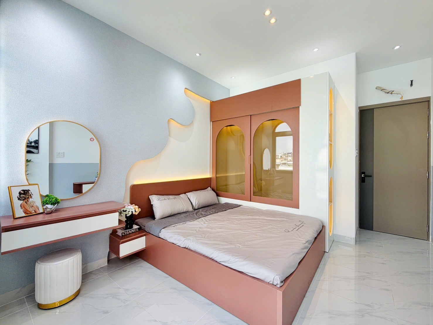 Phòng ngủ được thiết kế chuẩn khách sạn 4–5 sao, mỗi phòng có ban công riêng, tủ âm tường, bàn trang điểm, rèm 2 lớp cao cấp, đèn hắt trần tinh tế.