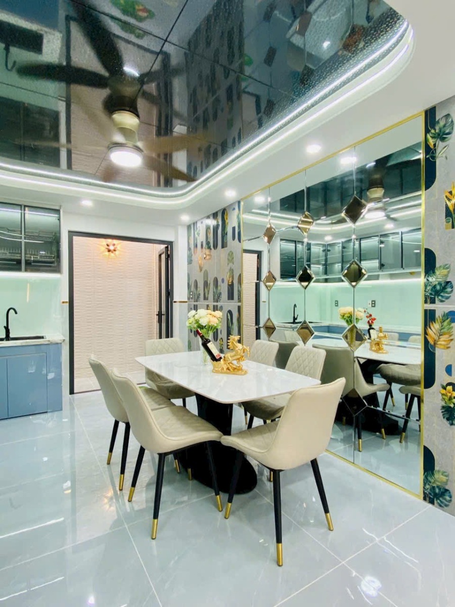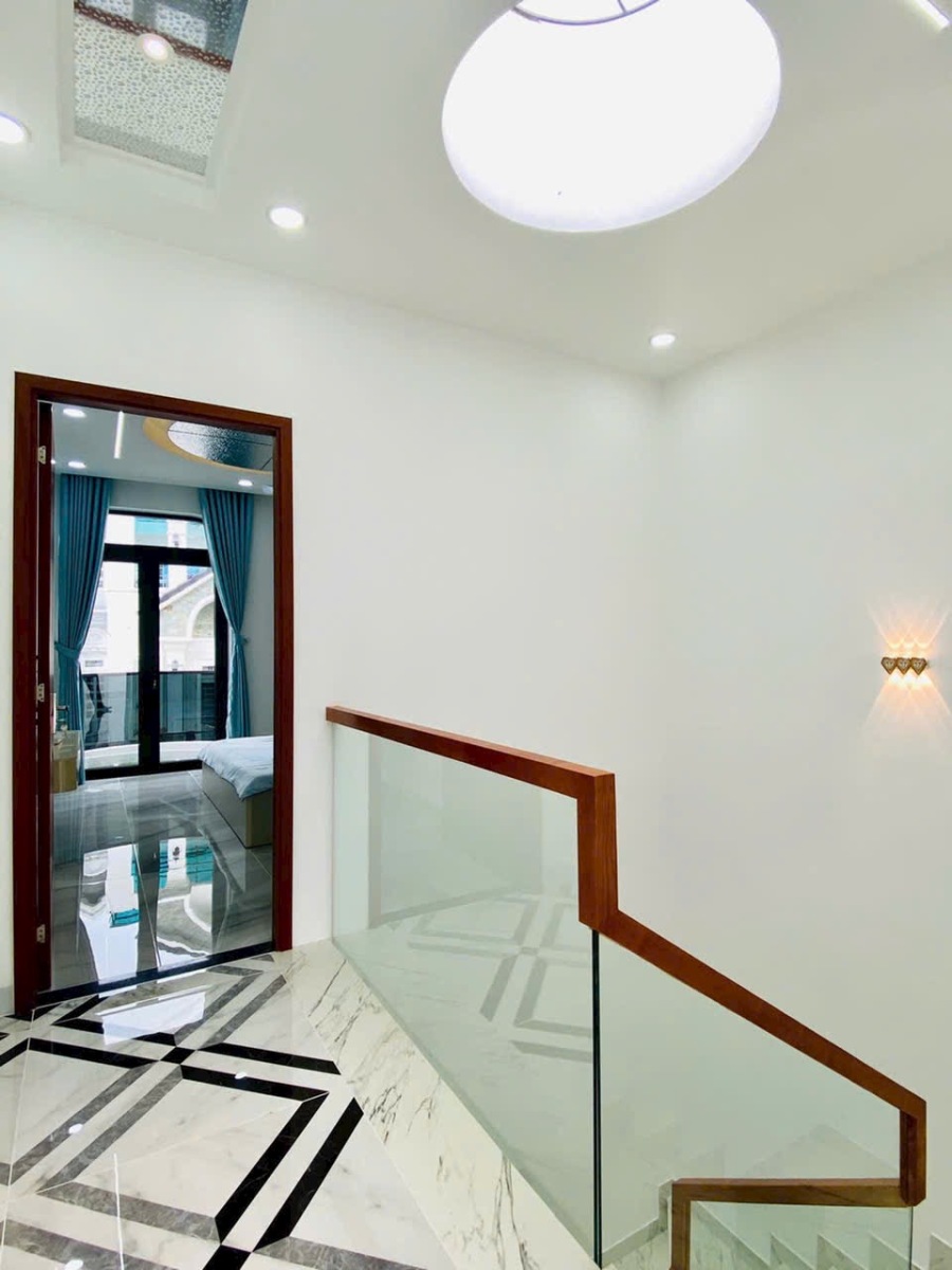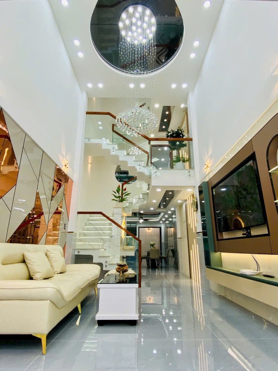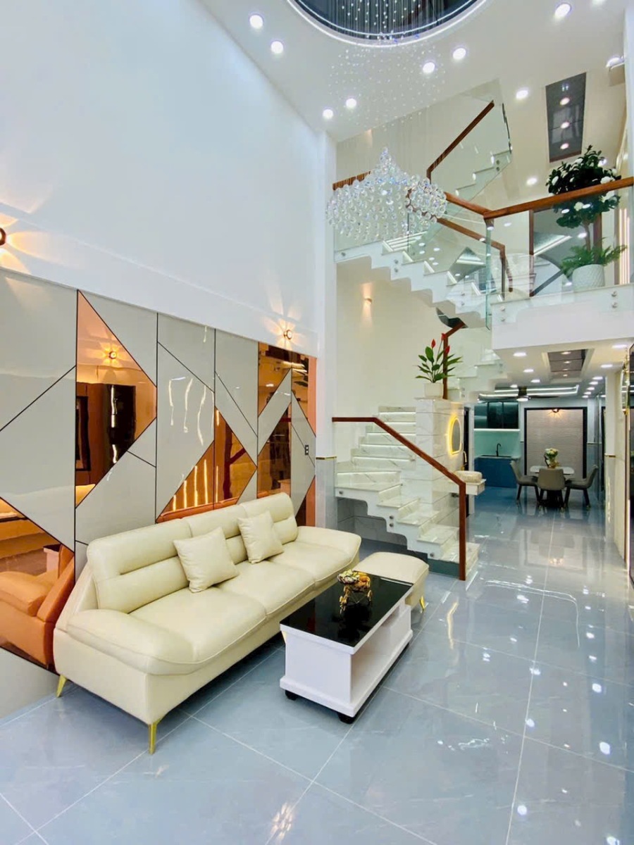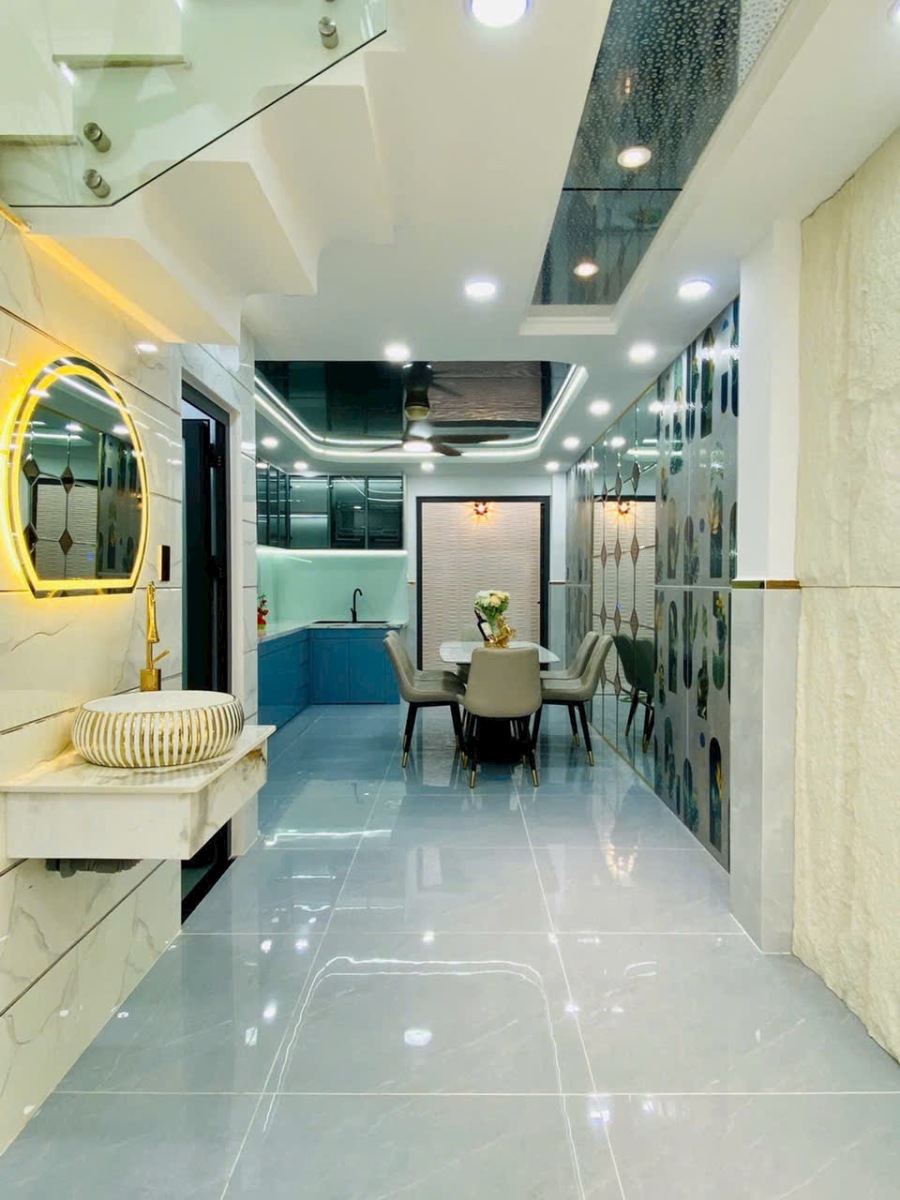 Căn nhà được chụp thực tế với đầy đủ các góc: phòng khách, phòng ngủ, bếp, sân thượng, phòng tắm… thể hiện rõ sự đầu tư tỉ mỉ trong từng chi tiết. Từ chandelier pha lê, gương LED, sàn gạch bóng kiếng, đến cầu thang kính tay vịn gỗ, tất cả tạo nên một không gian sống đẳng cấp, tiện nghi và đầy cảm hứng.
