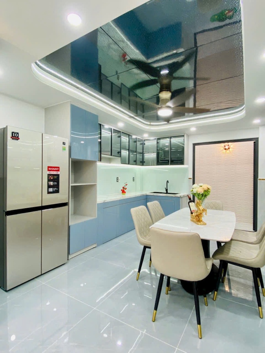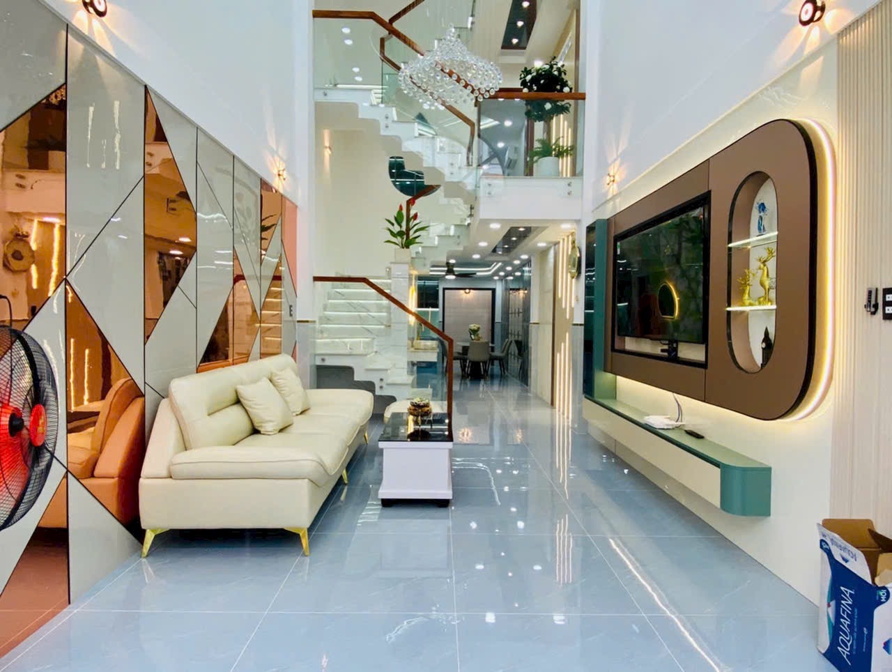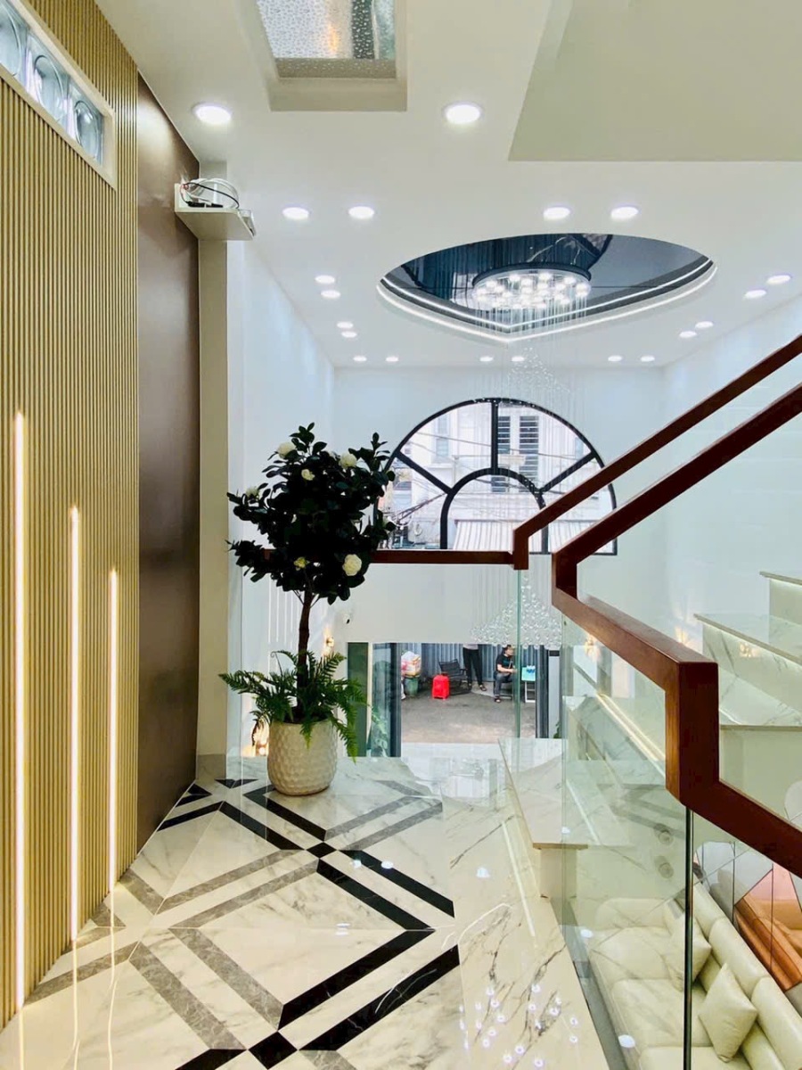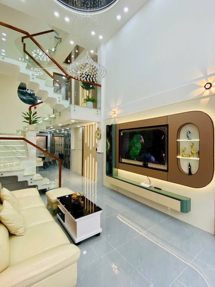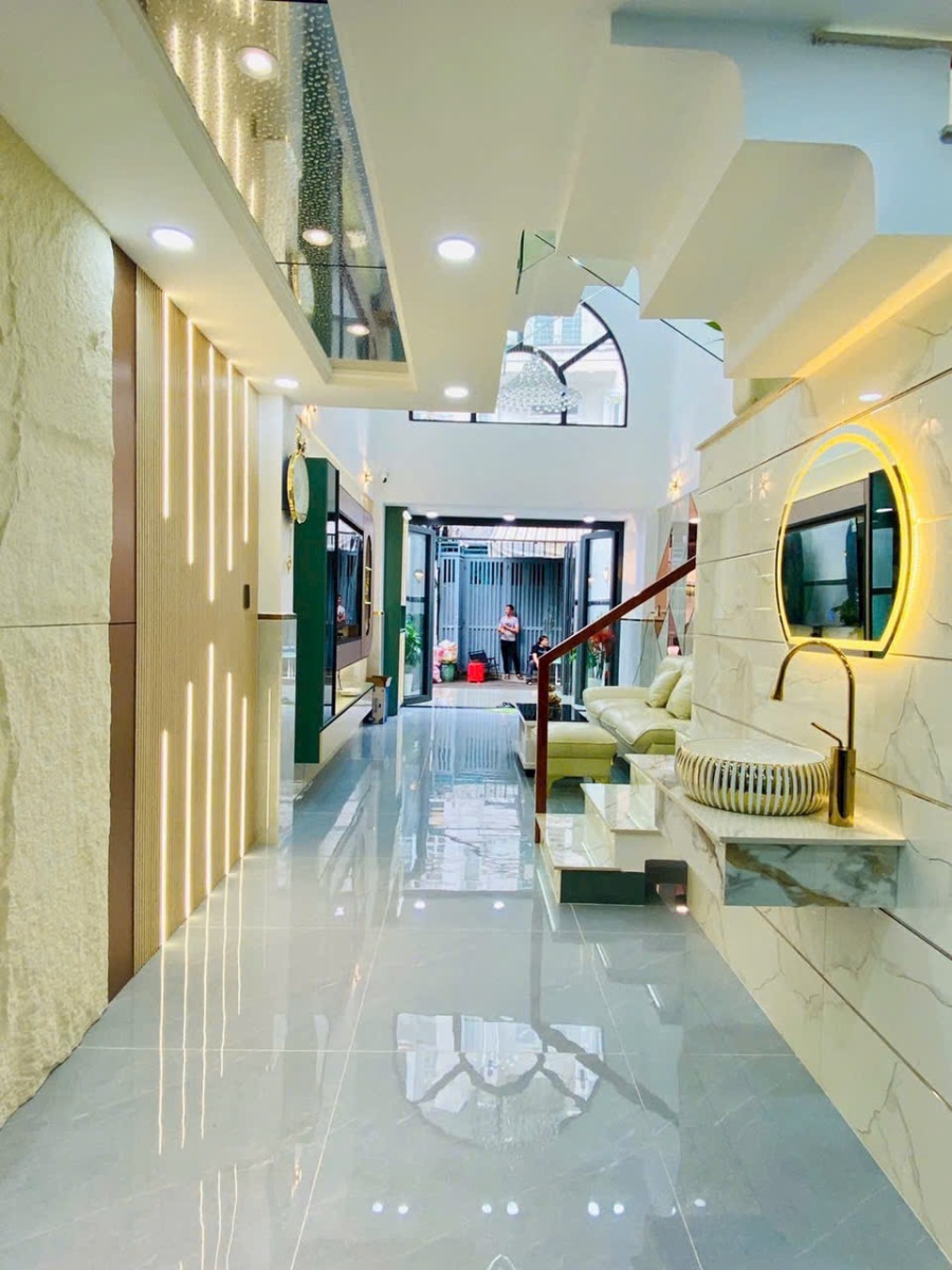 Căn nhà được chụp thực tế với đầy đủ các góc: phòng khách, phòng ngủ, bếp, sân thượng, phòng tắm… thể hiện rõ sự đầu tư tỉ mỉ trong từng chi tiết. Từ chandelier pha lê, gương LED, sàn gạch bóng kiếng, đến cầu thang kính tay vịn gỗ, tất cả tạo nên một không gian sống đẳng cấp, tiện nghi và đầy cảm hứng.