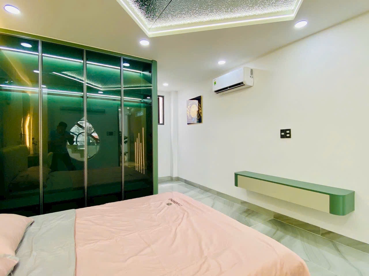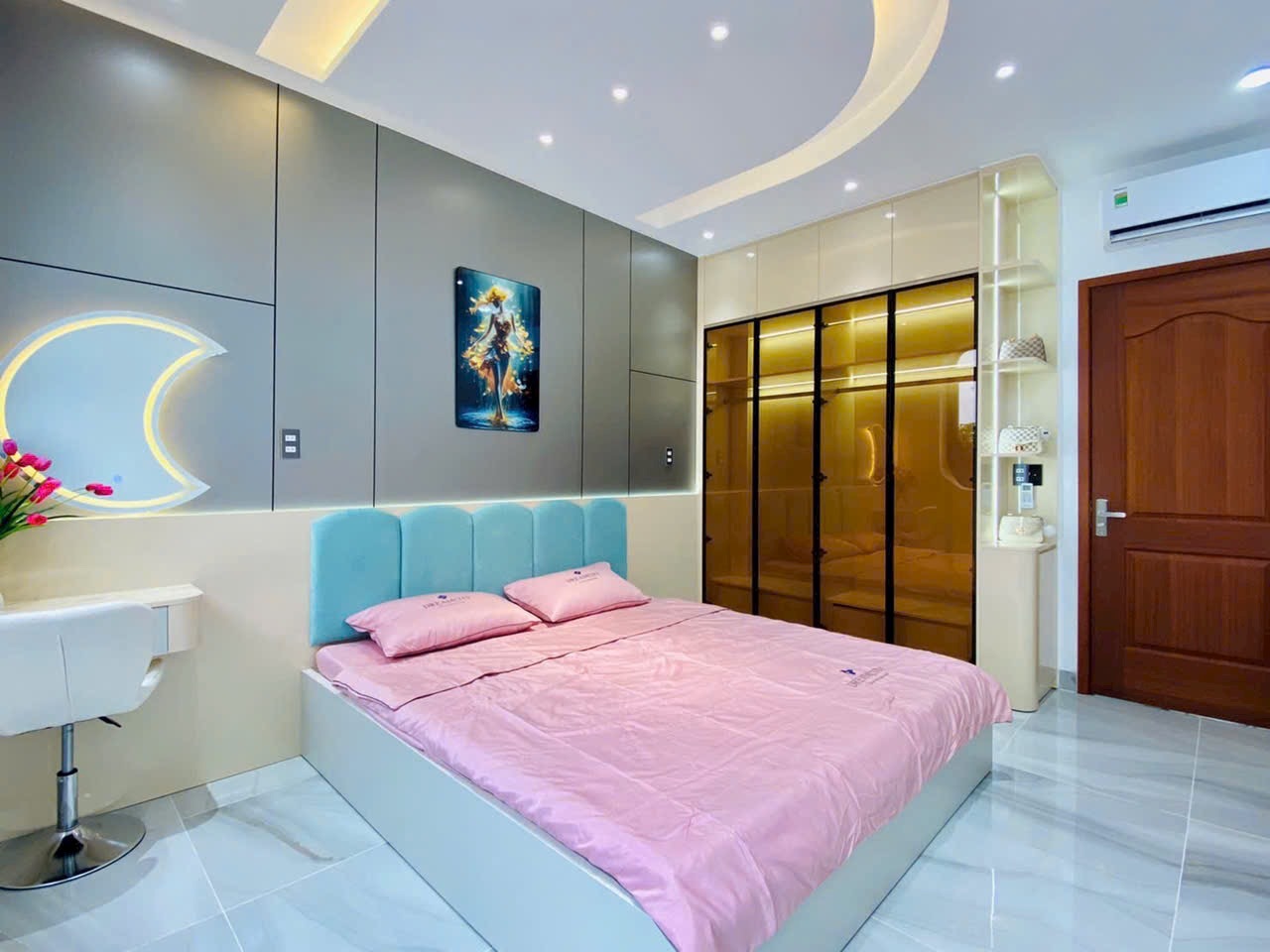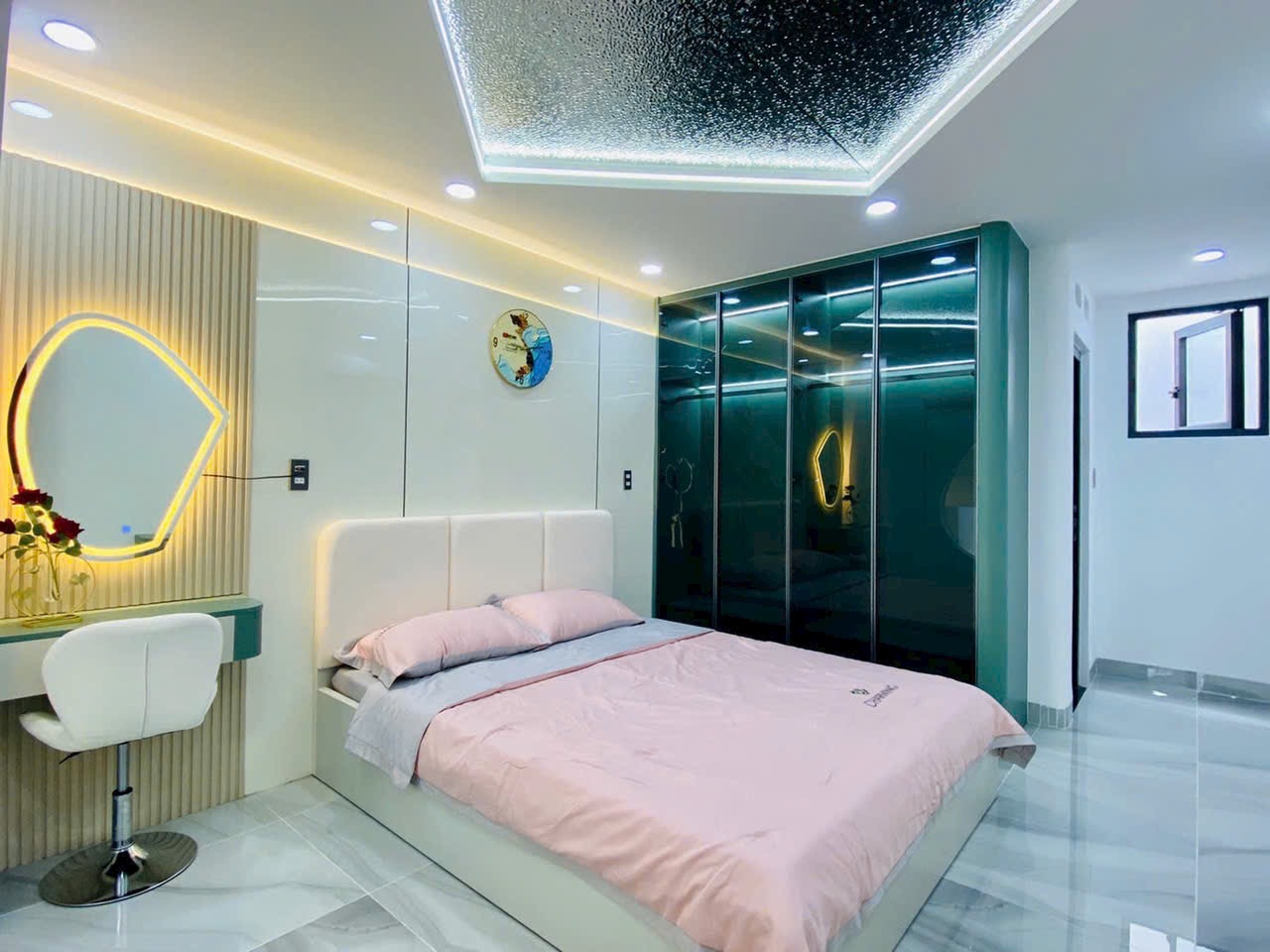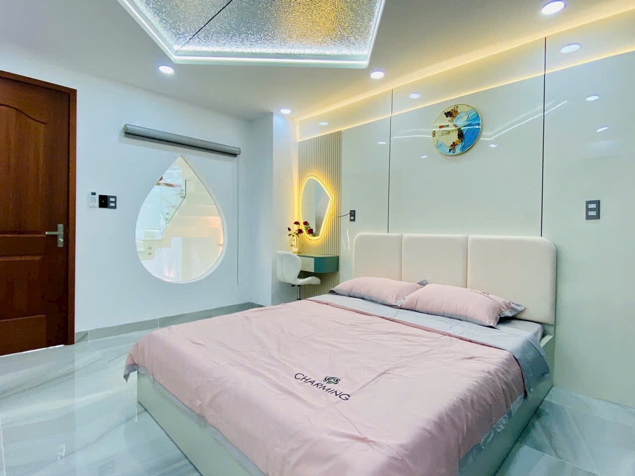 Căn nhà được chụp thực tế với đầy đủ các góc: phòng khách, phòng ngủ, bếp, sân thượng, phòng tắm… thể hiện rõ sự đầu tư tỉ mỉ trong từng chi tiết. Từ chandelier pha lê, gương LED, sàn gạch bóng kiếng, đến cầu thang kính tay vịn gỗ, tất cả tạo nên một không gian sống đẳng cấp, tiện nghi và đầy cảm hứng.
