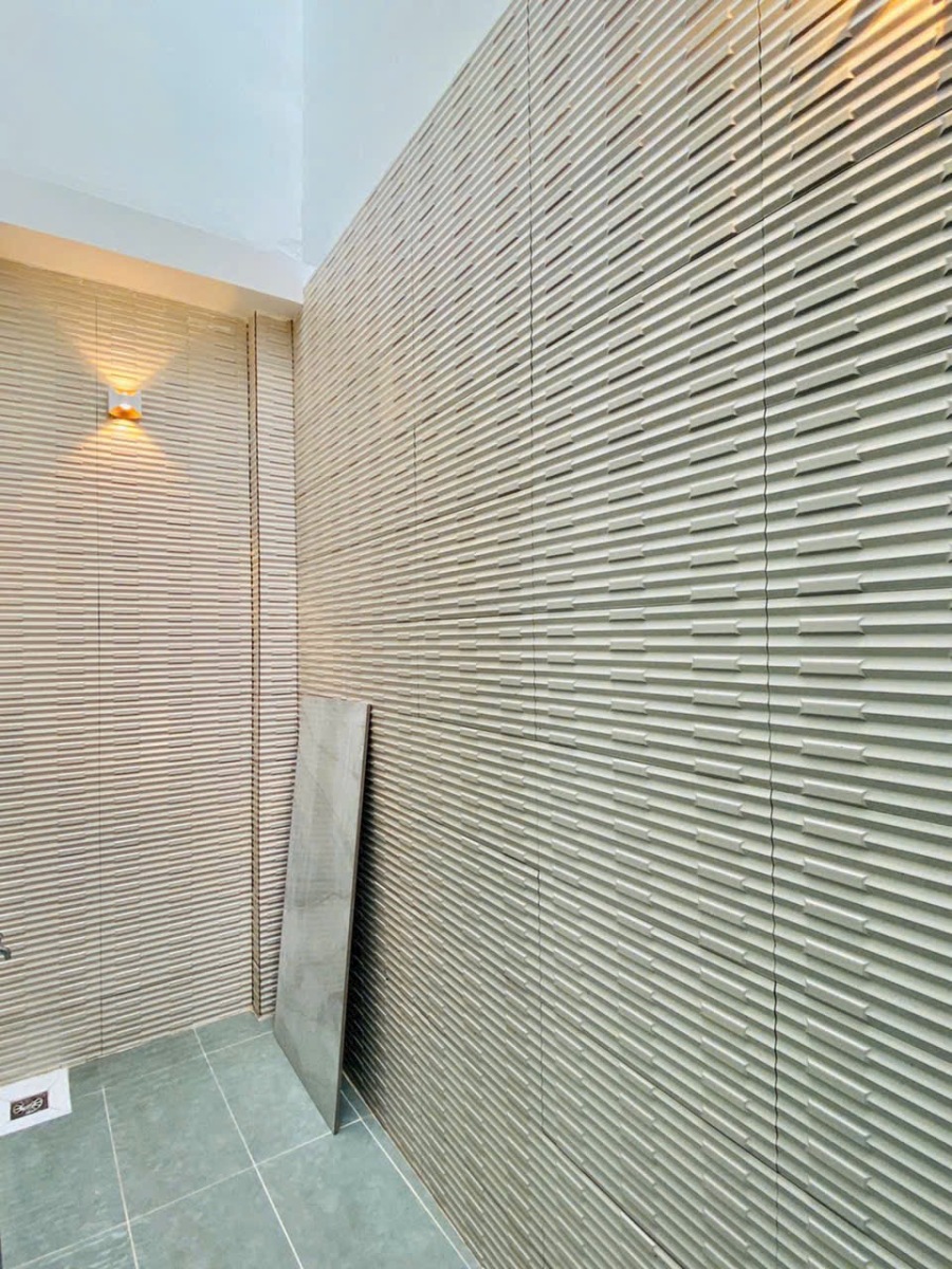 Căn nhà được thiết kế theo phong cách hiện đại – tối giản – sang trọng, sử dụng vật liệu cao cấp từ sàn gạch bóng kiếng, trần thạch cao giật cấp, hệ thống đèn LED âm trần, đến các chi tiết nội thất như sofa da, bàn ăn mặt đá, tủ bếp gỗ tự nhiên, thiết bị vệ sinh nhập khẩu.