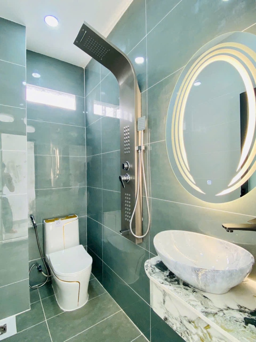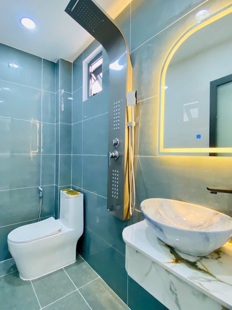 - Phòng tắm sử dụng thiết bị vệ sinh cao cấp, vòi sen đa chức năng, gương LED cảm ứng
