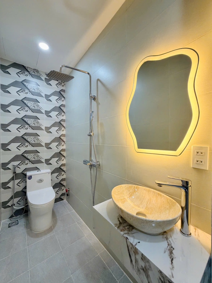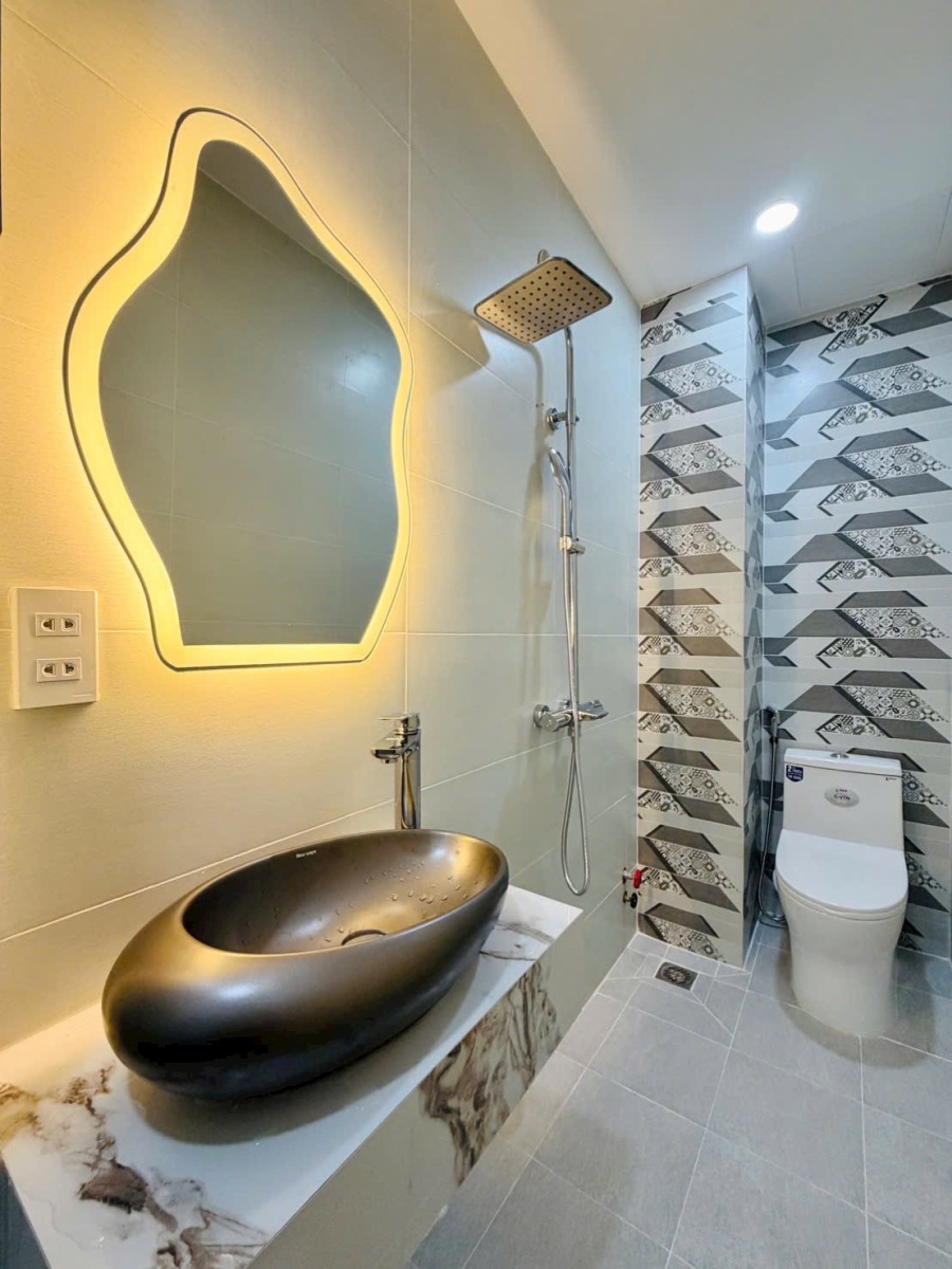 Thiết bị vệ sinh hiện đại, ốp gạch full tường, đảm bảo sạch đẹp, sang trọng và tiện nghi.