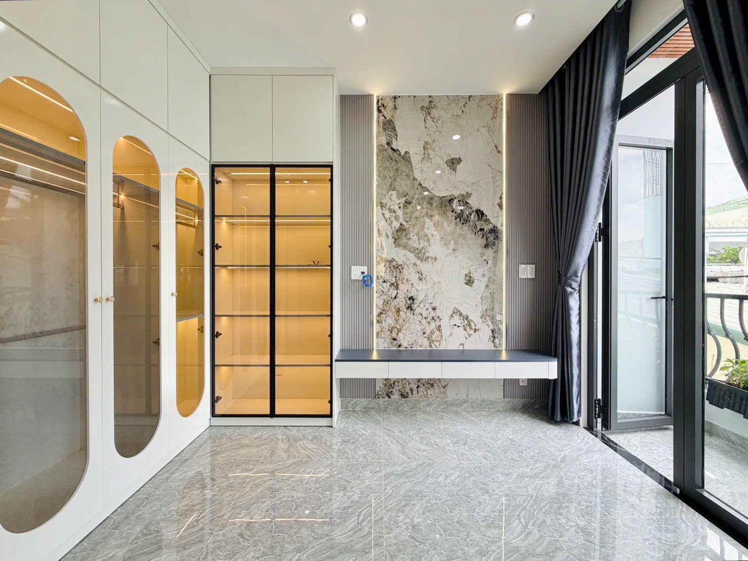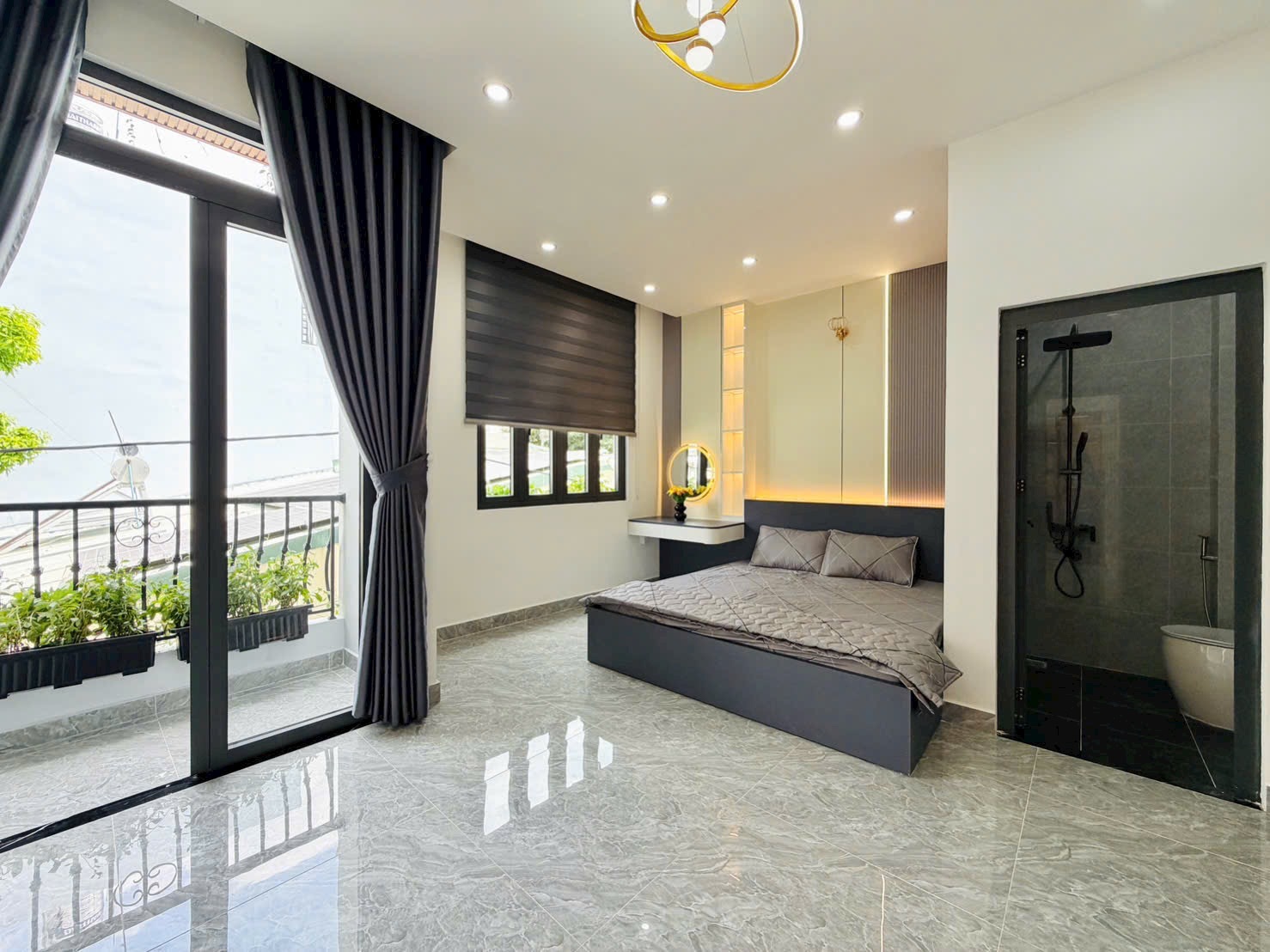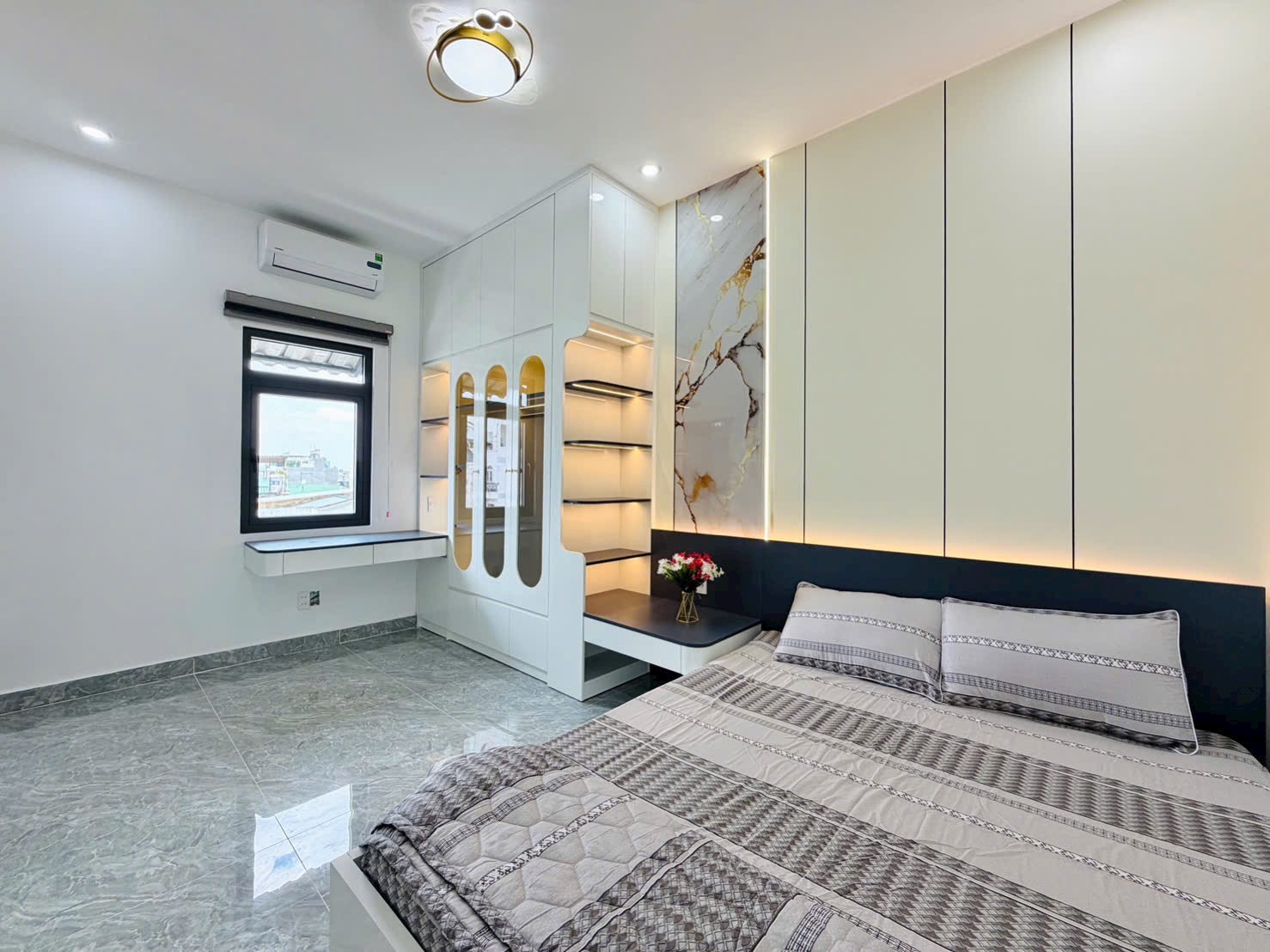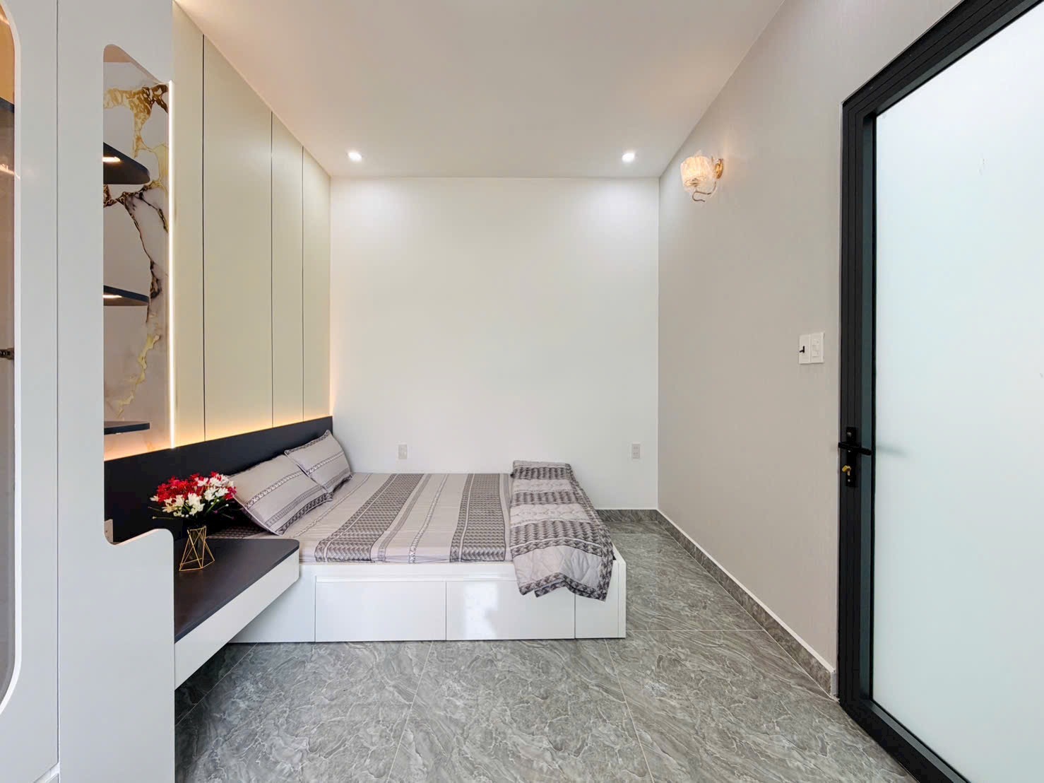 Nội thất cao cấp gồm máy lạnh, khoá vân tay, tủ bếp, đèn trang trí, cửa kính cường lực – chỉ việc xách vali vào ở.